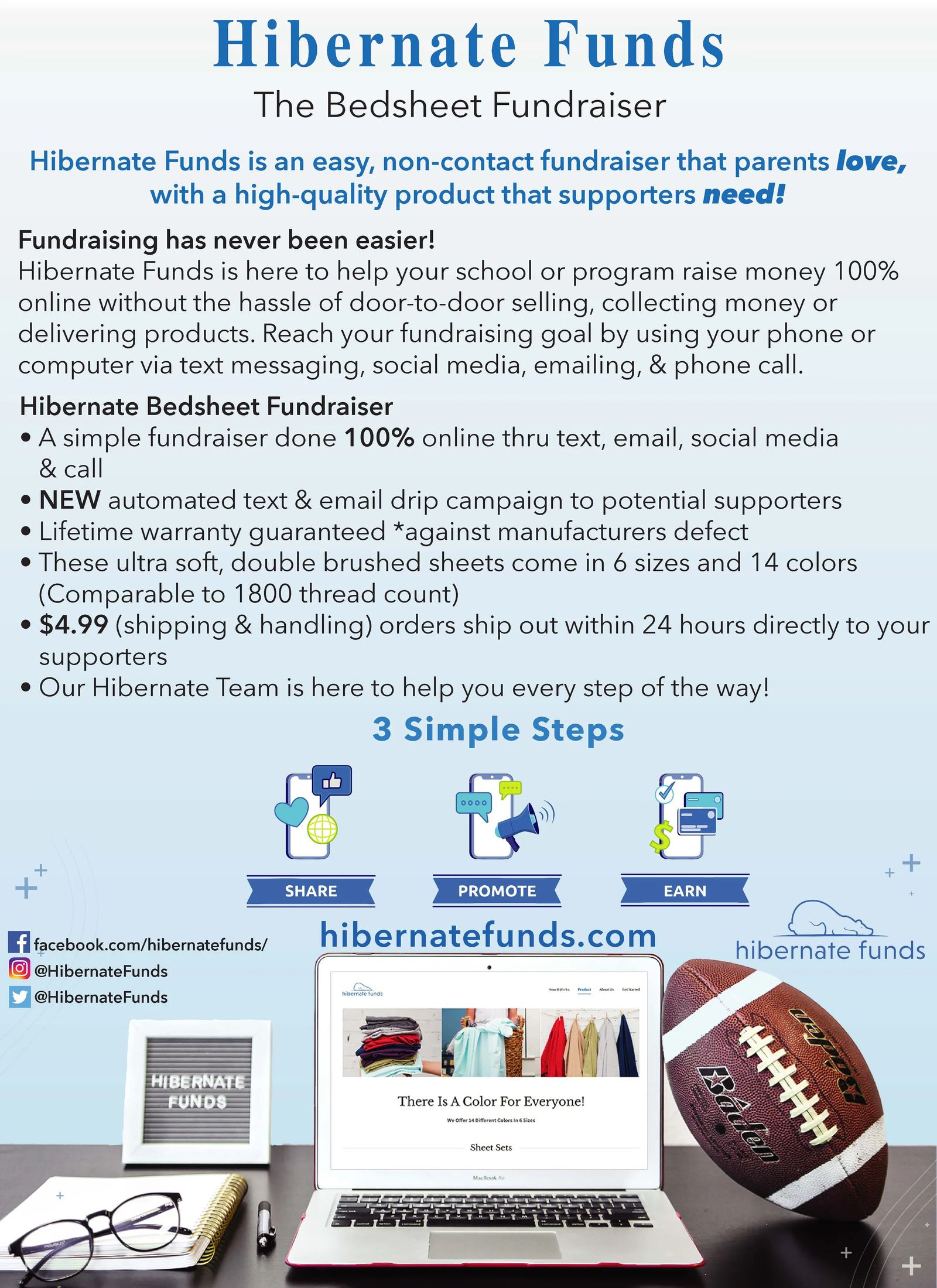We understand that COVID-19 has adversely impacted the ability to raise funds for your program. That's why we are so excited to be able to offer a fantastic 100% ONLINE fundraising opportunity right now while still maintaining social distancing. Introducing the hibernate bed sheet fundraiser, yes bedsheets! Unlike most other fundraising products, bedsheets are used and needed in every household. When you compare the hibernate bed sheet fundraiser to other product fundraisers, our profits are so high you can "bearly" believe it. Are you ready to join the hibernation? Contact us today!